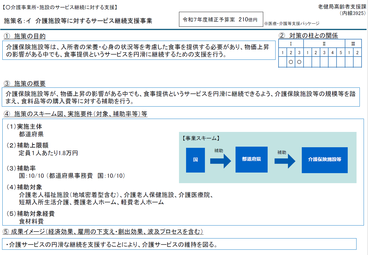 本事業は国において令和7年11月21日に閣議決定された「「強い経済」を実現する総合経済対策」における「医療・介護等支援パッケージ」の中の1事業となります。