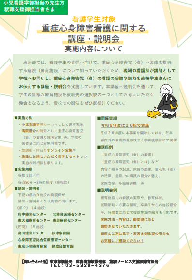 ※都立北療育医療センター・都立府中療育センターの情報は都立療育施設看護師職員採用ポータルサイト【イベント情報】からもご確認いただけます。