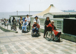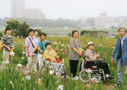 車いす利用者の社会参加を促進するため、毎月名所に車いす利用者を案内する活動を続け、平成14年4月には、それまでの活動実績をまとめた「車いすとともに歩くお出かけガイド」を1000冊作成し、港区内の小・中学校や公共・福祉施設に寄付しました。また、小・中学校や企業向けに車いす講習会を実施するなど、バリアフリーの社会作りに寄与する活動の推進に努めています。