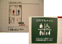 利用者アンケートの実施、車いす利用者、視覚障害者やオストメイト、建築や理学療法等の専門家、民間事業者など様々な立場の人を集めた市民参加型会議を開催し、設計に反映した取組は、使う側の視点に立って施設の整備を図るモデルと言えます。また、「お気に入りのトイレ」を選んでもらうという発想を提案し、おもちゃ・ベビー用品売場では「夢・遊び心のある空間」というテーマに沿って、子どもを中心に家族が集う楽しい空間を演出するなど、フロアごとに様々なテーマを設定して整備している点も特徴的です。