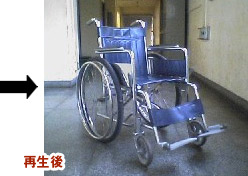 工業高校生ならではの知識や技術を発揮して、廃棄された車いすも新品同様に再生されています。