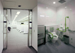 左:入口を自動ドア化した上で、車いすを使用されるお客さまにも利用しやすいよう通路幅を整備しました。