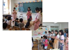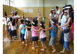 東京都立町田高等学校家政科は、昭和26年から58年間にわたり、生徒が家政科で学んだ成果を生かして地域の幼稚園児を保育する「子ども会」を毎年夏休み期間中に実施しています。