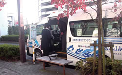 この運行事業は、日野市の福祉対策の提案として、同市に採用されて以来、12年間の実績を積み重ねており、現在は市内2ルートを1日各16便運行しています。利用者は大型車両を導入するほど増加しており、現在では丘陵地帯に住む方々の移動手段として必要不可欠な存在となっています。