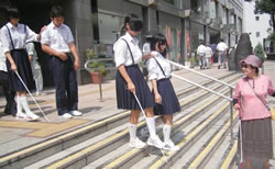 大田区立蒲田中学校は、平成14年より総合的な学習の時間を活用し、障害に対する生徒の理解促進を目指した取組を実施しています。