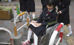 この福祉体験学習の結果、生徒はまちなかの見ず知らずの障害者に対して行動で思いやりの心を表すことができるようになり、障害者や見ていた地域の方々から感謝の声をいただいています。