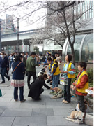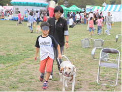 アイメイト後援会は、アイメイト(盲導犬)の普及と支援を目的とし、様々なイベントにおいて盲導犬に対する理解を深めるための活動を行っています。地域の行事や学園祭等のイベント来場者に盲導犬の歩行体験を通して視覚障害者の気持ちや盲導犬の役割について理解してもらう活動で、平成25年度は都内11会場で実施されました。