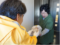 また、宅配事業では視覚障がい者の買い物のバリアフリー化に向けて、注文・納品の点からサポートを実施しています。注文商品は、毎週同じ担当者が組合員宅へお届けしており、視覚障がいのある組合員の要望に応じて、商品を屋内まで納品するなど状況に応じた配達を行っています。