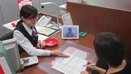 また、「手話通訳・筆談・音声認識サービス」アプリを全拠点に導入しました。これにより、タブレットのテレビ電話を通じて手話通訳オペレーターがリアルタイムに通訳することができるようになり、聴覚言語障害の方が来店された際に、スピーディかつ円滑なコミュニケーションが行えるようになりました。