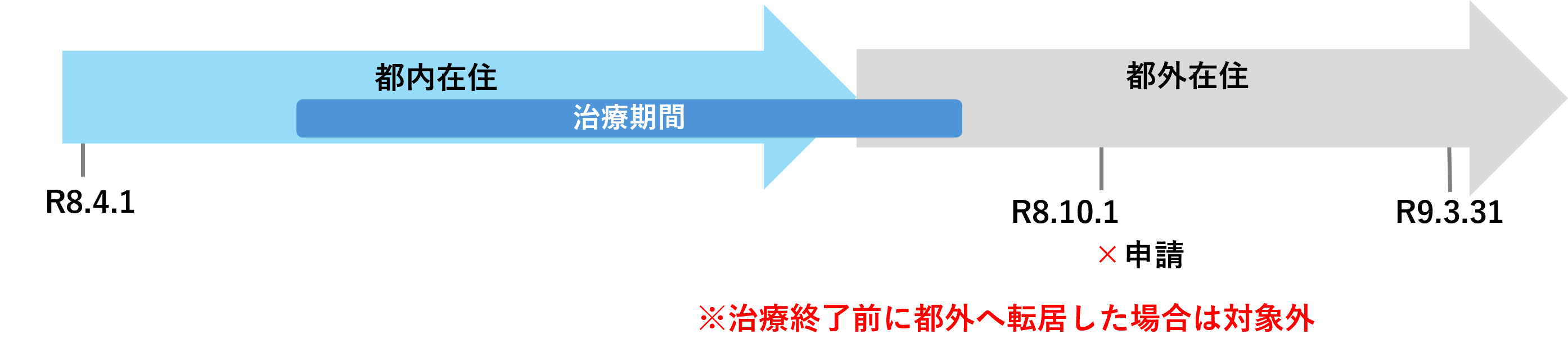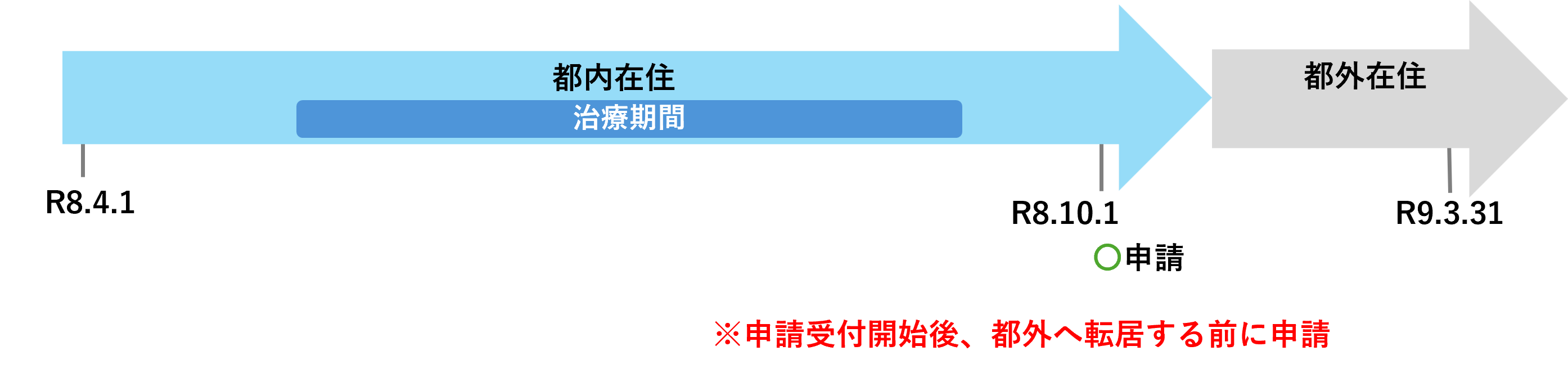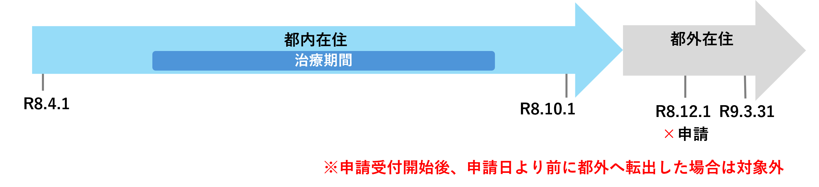 申請 :令和8年10⽉1⽇ ※申請受付開始後、必ず都外へ転出する前に申請してください。