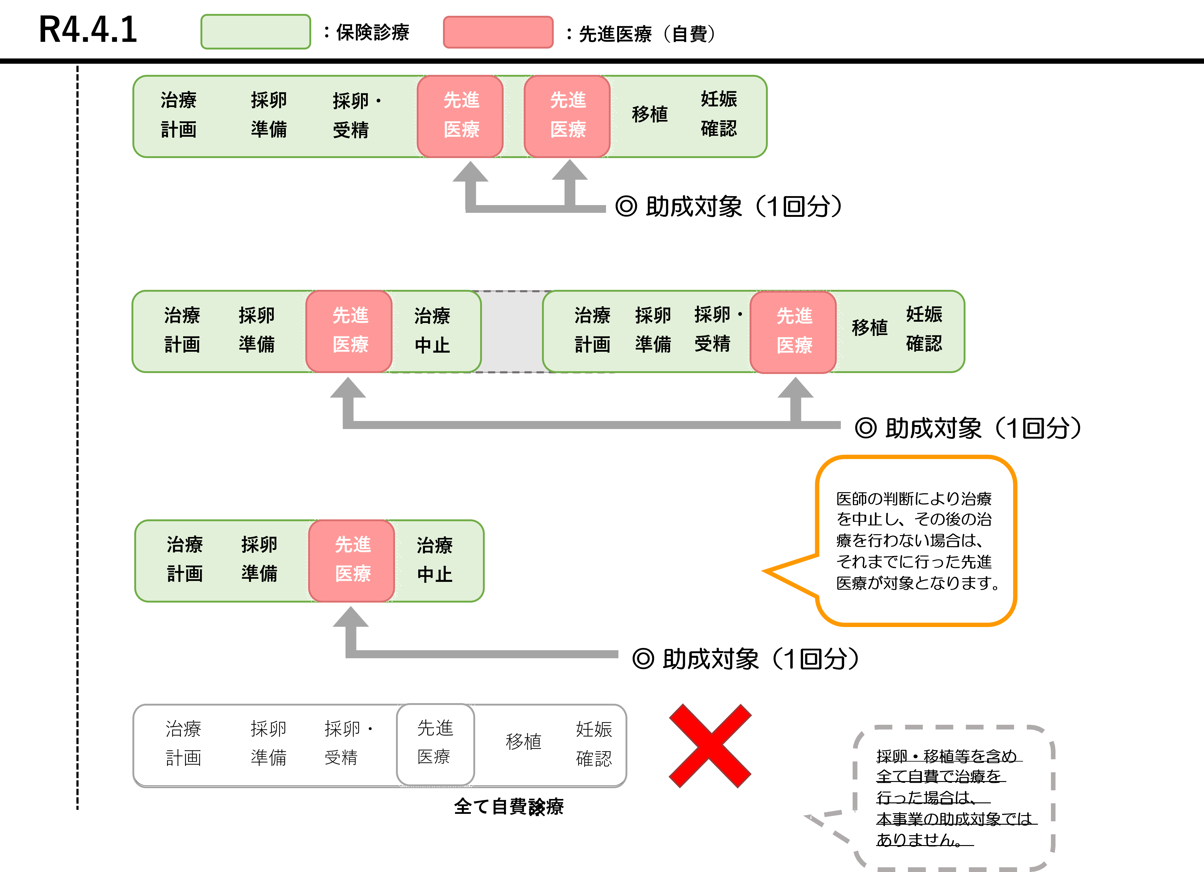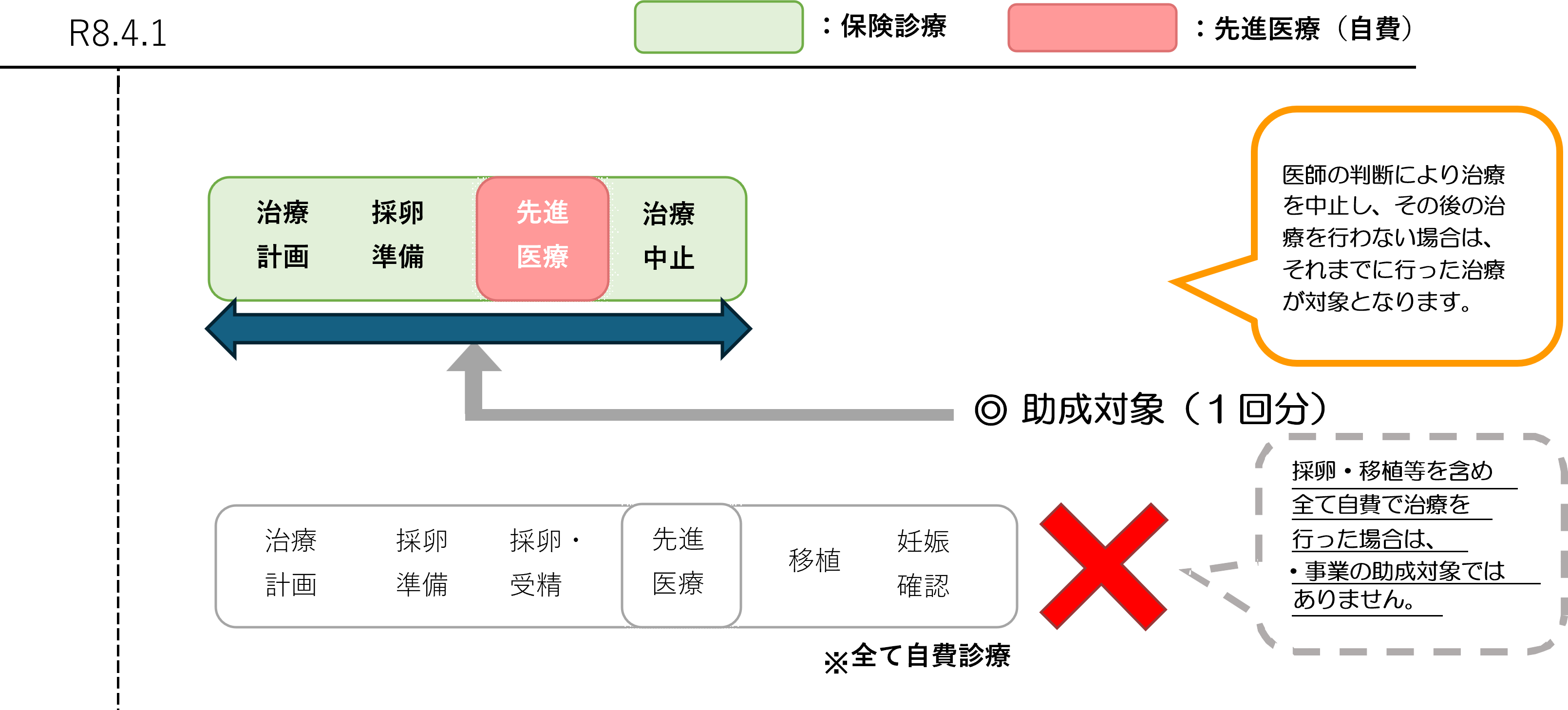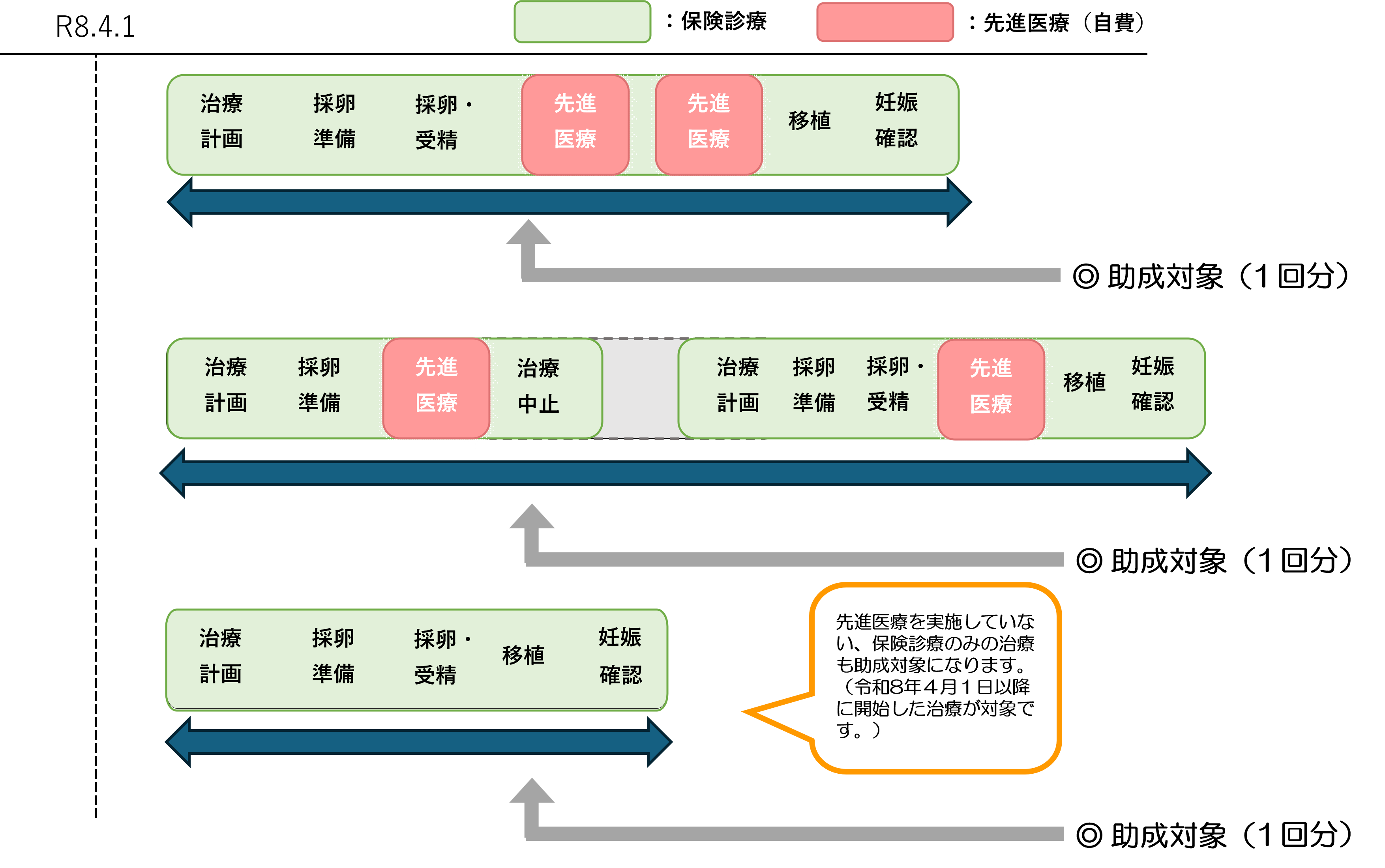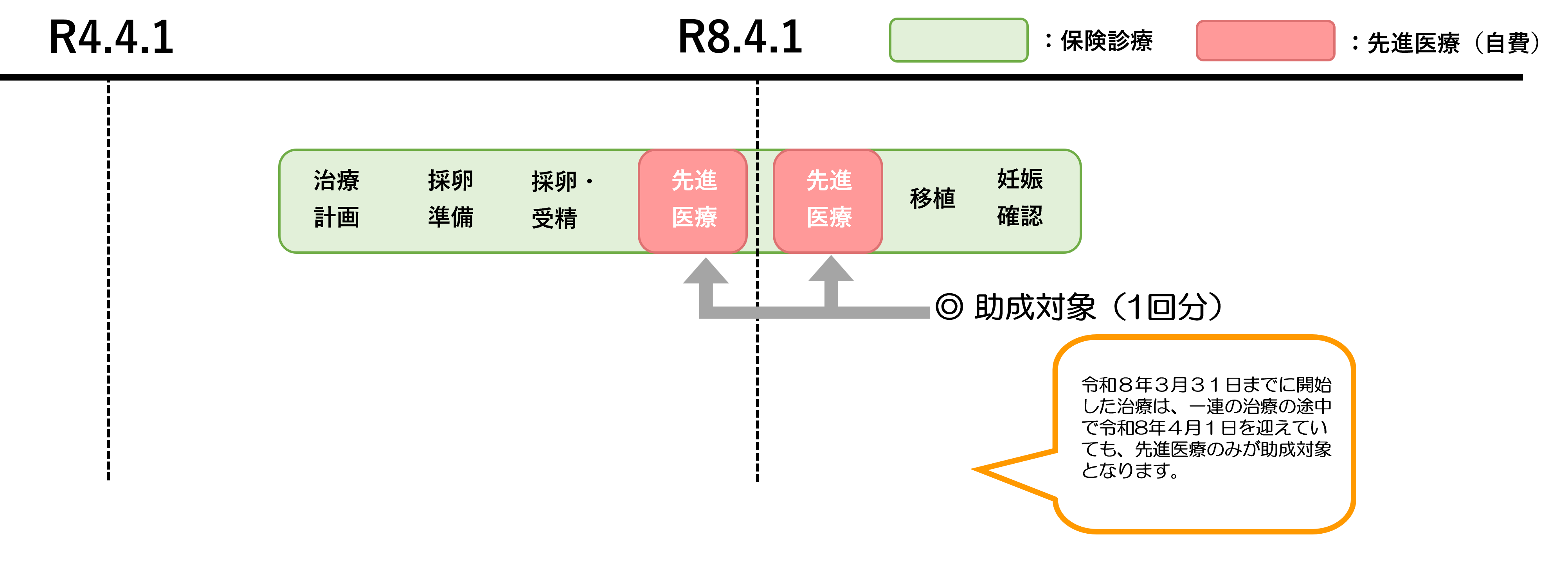 令和8年3月31日までに開始した治療は、一連の治療の途中で令和8年4月1日を迎えていても、先進医療のみが助成対象となります。