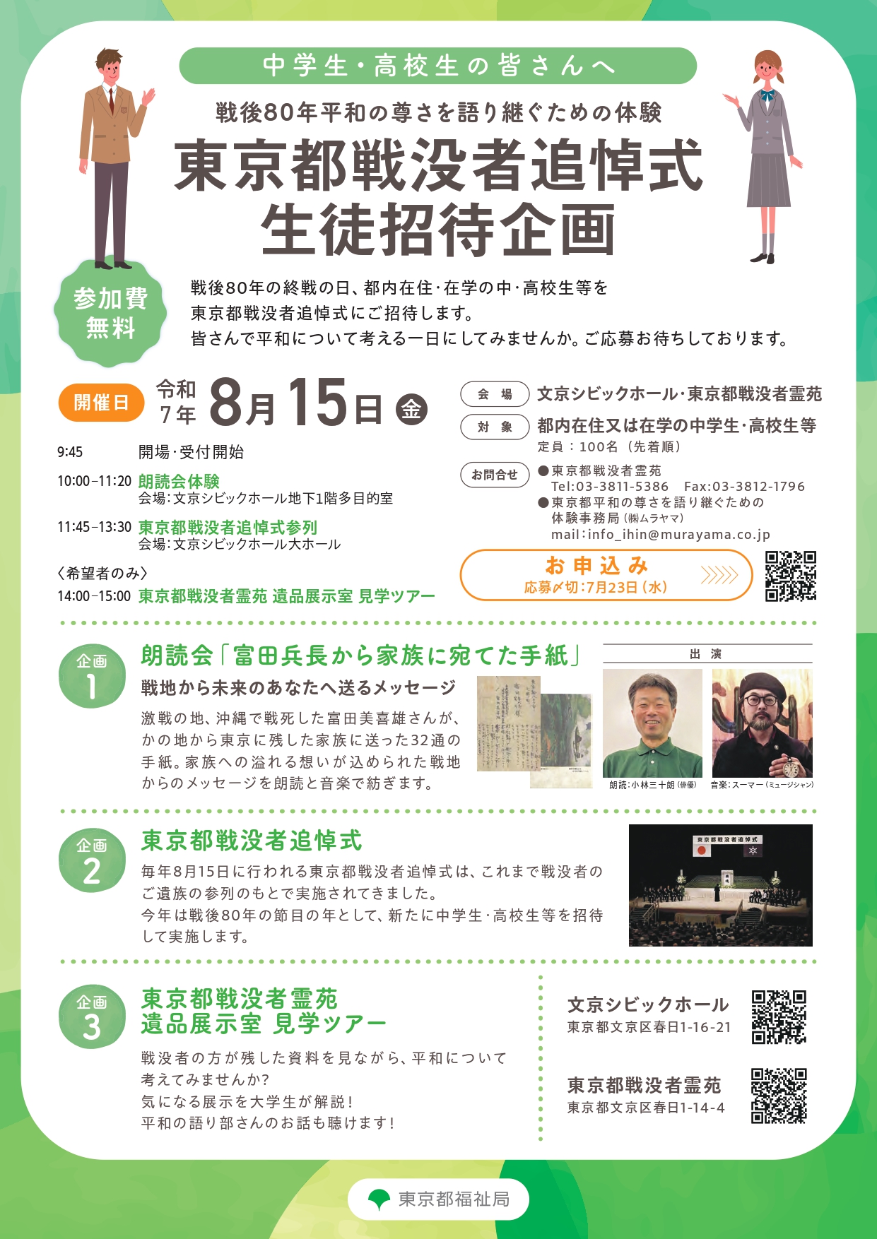 今年は都内在住・在学の中学生・高校生等を招待します。