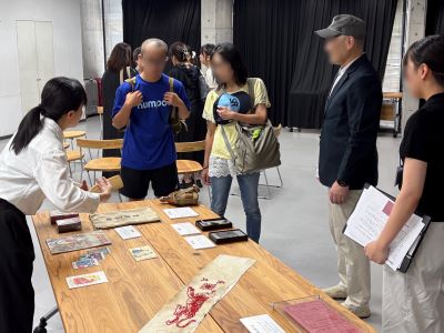 帰還者たちの記憶ミュージアム(平和祈念展示資料館)の貸出資料を大学生ボランティアが解説をしました。