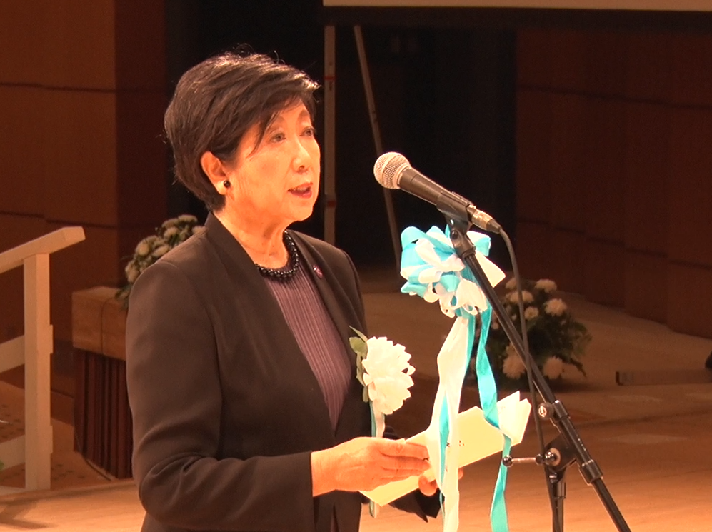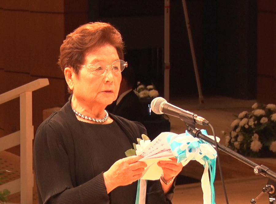参列者が黙とうした後、天皇陛下のおことば(放送)に続いて、都議会議長、東京都遺族連合会会長、戦没者遺族代表が追悼のことばを述べました。戦争でお父様を亡くされた浅水久子さんは、「いま、父を知る人はもう誰もいません。だから私は語り継ぎます。父が遺せなかった言葉を、母が伝えてくれた記憶を、戦友が託してくれた思いを。そして、あの戦争の現実を。私は父の分まで、幸せに生きていきたいと思っています。」と述べられました。