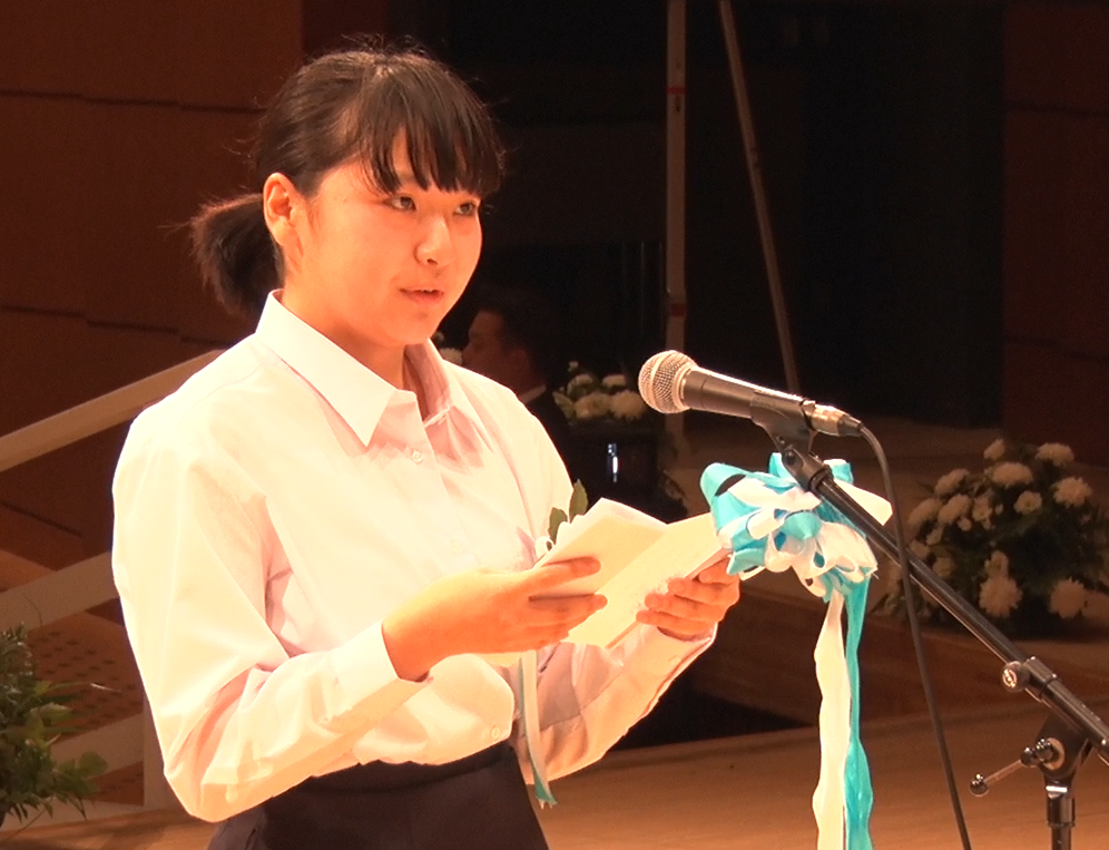 また、フィリピンのルソン島で曽祖父をなくされた中学3年生の立川那由多さんは、「ひいおばあちゃんから祖母へ、祖母から父母へ、父母から私へ、そして私から未来の子どもたちへ平和の大切さを伝えていく。それが戦争を知らない私たちの責任です。」と述べられました。