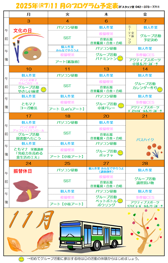 2025年11月のデイケアプログラム